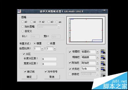 3、點“圖紙設(shè)置”,彈出“清華天河圖紙設(shè)置”窗口,如圖所示。