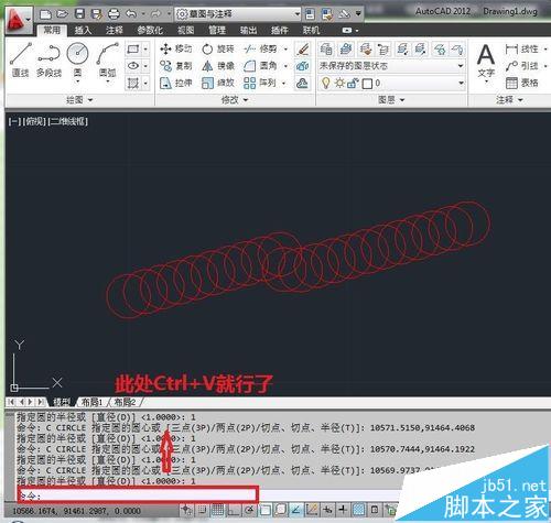 3、上面的例子相當(dāng)簡單,但是引我們思考。為什么可以直接復(fù)制呢?其實CAD是可以讀取從Excel在復(fù)制過去的內(nèi)容的。那么我們就可以把所有可以在命令行輸入的內(nèi)容在Excel中編輯出來然后“Ctrl+C”“Ctrl+V”就OK了。如下面,我們就用上面的那些數(shù)據(jù)為圓心繪制半徑為1的圓。
