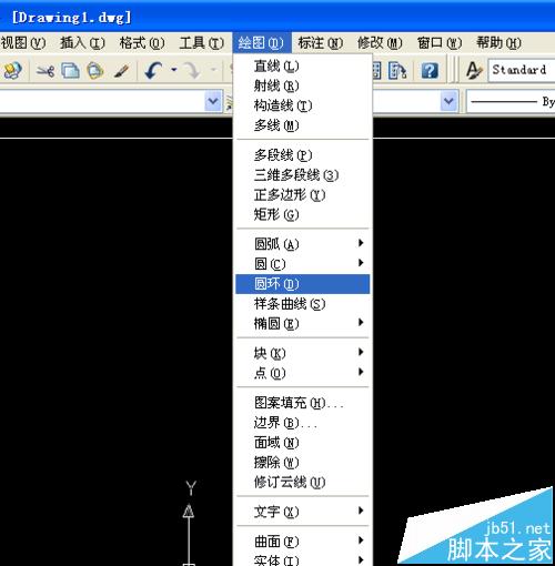 1、在“繪圖”下拉菜單欄中找到“圓環(huán)”命令。
