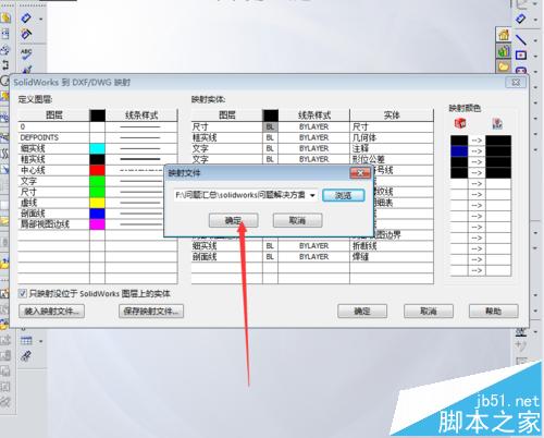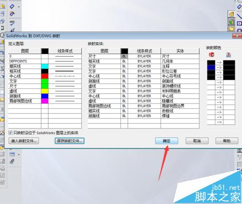 3、再按“確定”。系統返回到“另存為”對話框;按“保存”;在 “Solidworks 到 dxf/dwg 映射”對話框中設置圖層。