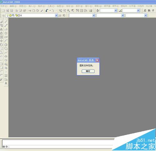 2、我們打開圖形的時候,經常會出現無效情況,如以2004版cad打開2012版圖紙為例,打開后,會顯示圖形文件無效的提示,詳見下圖。