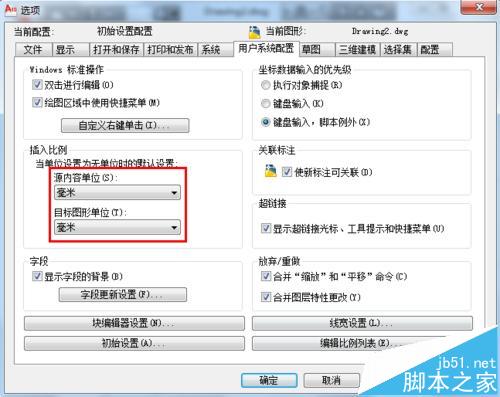 5、在cad選項中選擇用戶系統配置,在其中可以設置單位。