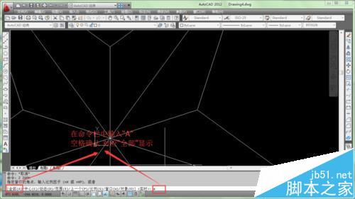 3、然后,在命令欄中輸入“A”,大小寫都可以,空格或回車確認。