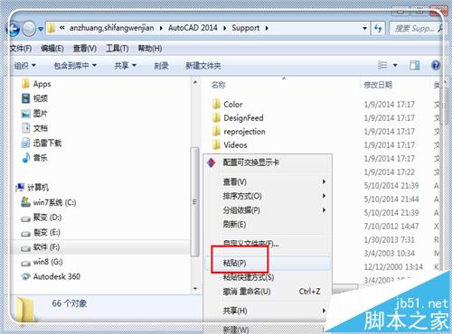 6、進入“support”文件夾中,使用“ctrl+V”或者是右鍵點擊,選擇“粘貼”,將文字粘貼到里面。