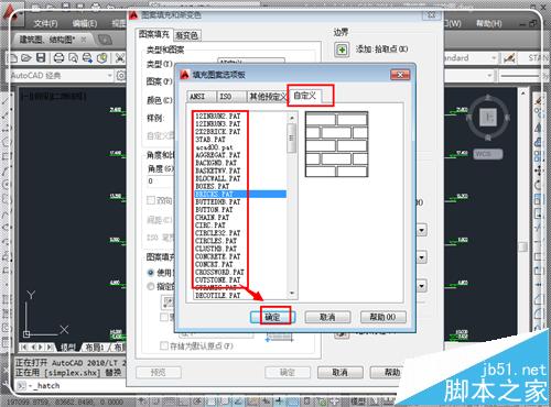3、進入之后,點擊菜單欄的“自定義”,這里都是剛才復制進來的填充圖案,選擇其中的圖案,點擊“確定”,然后選擇填充的對象位置,就可以使用剛才安裝的填充圖案。