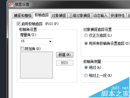 1、利用極軸追蹤畫斜線,首先進行設置。右擊極軸追蹤圖標進行設置,啟用極軸追蹤,設置增量角,一般是15度,具體看要畫的斜線的角度。