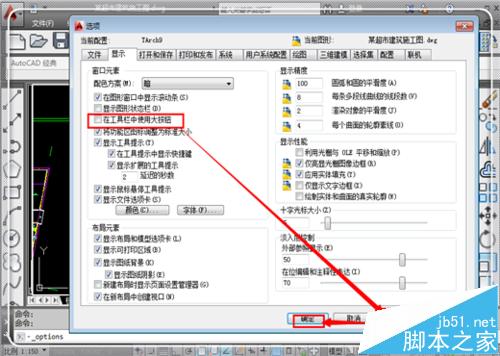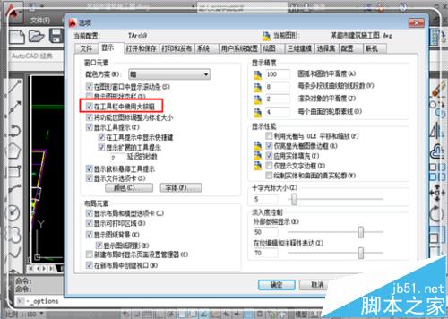 4、在“顯示”欄目中,可以看到“工具欄中使用大按鈕”前面是有勾的。