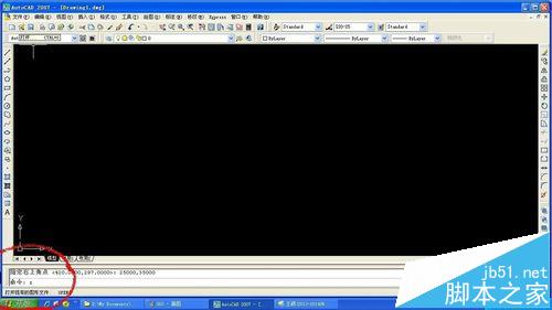 3、在下方命令輸入框里用鍵盤輸入“25000,35000”,然后按回車鍵。(定義圖形界限的右上方坐標,比需要畫的圖形大出5米左右)