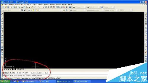 2、在下方命令輸入框里用鍵盤輸入“0,0”,然后按回車鍵。(定義圖形界限的左下方坐標)
