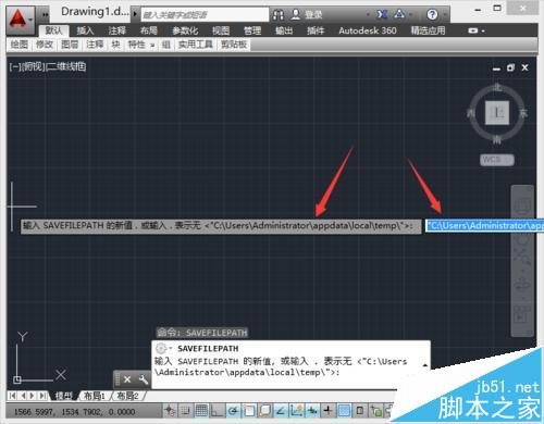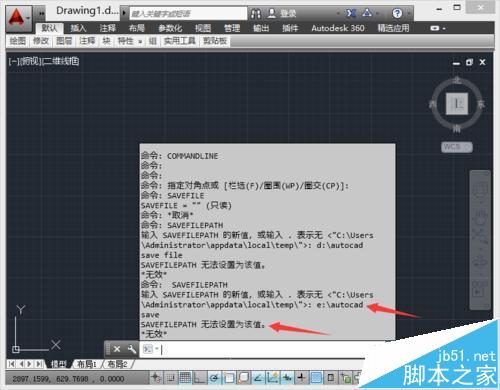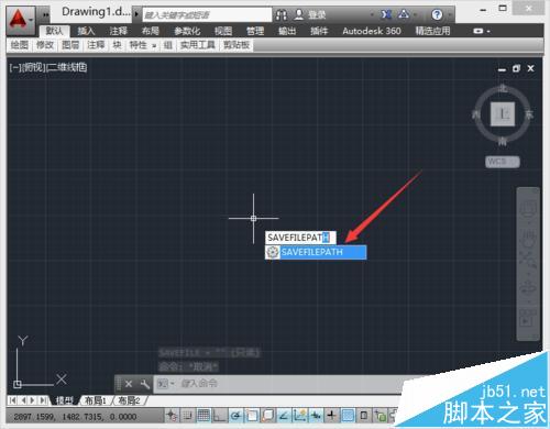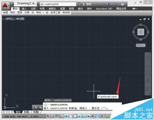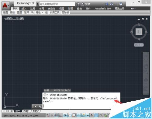 7、再次輸入【savefilepath】命令,同時(shí)輸入路徑【e:/autocad save】,如下圖: