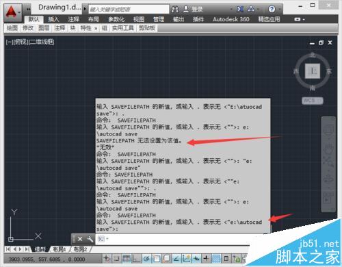 9、再次輸入【savefilepath】命令,可以看到自動(dòng)保存文件的路徑已經(jīng)為【e:/autocad save】,如下圖: