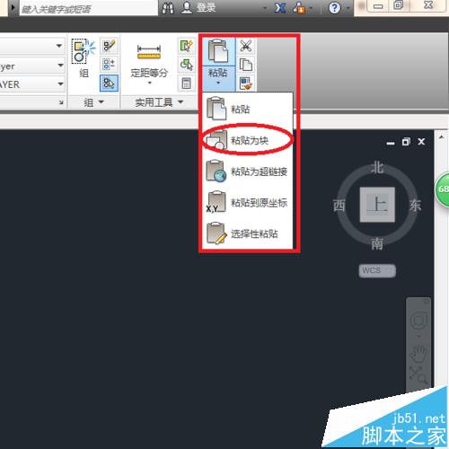 2、在工具欄位置尋找“粘貼”命令,選擇“粘貼為塊”選項(xiàng)
