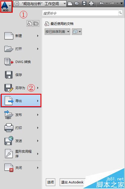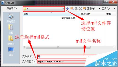 點擊左上角的軟件圖標 ,彈出一個下拉菜單,在下拉菜單中選擇“導出”→“其他GIS格式”,彈出“導出位置”對話框,選擇好導出的mif文件存放的文件夾和mif文件名稱,這里先導出多段線圍成的面,所以名稱命名為“面”。