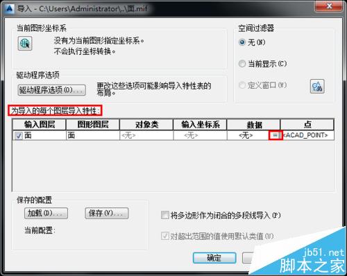 在AutoCAD Map 3D 2014中新增加一個空白圖層,在菜單欄點擊“插入”,再點擊“地圖導出”彈出“導入位置”對話框,點擊選擇要導入的mif文件,單擊“確定”彈出導入設置對話框,在“為導入的每個圖層導入特性”一欄找到“數據”一列,點擊下面“<無>”旁邊的 按鈕,彈出“屬性數據”對話框,選擇“創建對象數據”,在“要使用的對象數據表”一欄選擇“面”(如果沒有此步驟,導出的shp文件將會沒有屬性),其余默認,點擊“確定”回到導入設置界面,再次點擊“確定”,開始導入生成的mif文件。