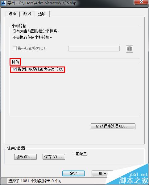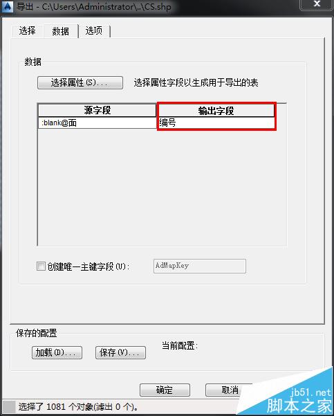 點擊軟件左上角的圖標 ,同導出mif一樣,在下拉菜單中選擇“導出”→“其他GIS格式”,在“導出位置”對話框將文件類型修改為shp,這里將導出的文件命名為“CS”,點擊“確定”,進入導出設置的對話框。點擊“選擇”分頁,在“對象類型”一欄選擇“多邊形”;點擊“數據”分頁,點擊“選擇屬性”按鈕,在彈出的“選擇屬性”對話框中雙擊“對象屬性”,將“面”勾選上(如果沒有此步驟導出的shp文件也會沒有屬性),單擊“確定”回到導出設置界面,在“輸出字段”處將其字段名修改為“編號”,這個字段名即為我們之前在ArcGIS內看到的那個字段名;點擊“選項”分頁,在“其他”一欄勾選上“將封閉多段線視為多邊形”(若沒有此步驟將無法將封閉的多邊形導出成面),點擊“確定”開始導出成shp文件。