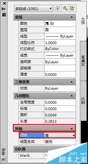 導入完成后可以看到如圖所示的圖形,現在正式開始導出shp文件。利用框選的方式將所有的圖形框選上,單擊右鍵,選擇“特性”,在“特性”對話框內找到“其他”一項,再找到“閉合”一項,將其修改為“是”(若沒有此步驟將不能將多段線圍成的圖形導出成面),回車確定。