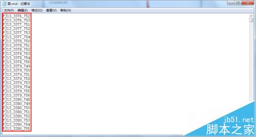 以記事本的方式打開剛剛修改后的“面.mid”文件,可以看到里面是編號,新建一個excel文件,將所有的編號剪切到新建的excel內,Ctrl+F,利用查找和替換功能對編號進行修改。修改規則:將“FJ13_33”替換為1;將FJ13_34替換為2;將“_”替換為空白(即去掉),將替換修改后的編號復制到“面.mid”文件內并保存,替換后的“面.mid”如圖,這樣就完成了對編號的修改。