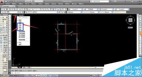 5、當我們完成相應的平面圖的繪制后,CAD會將整個圖紙的三維模型建立,我們可以在繪圖處的左上角點擊“俯視”,調整視角,從而獲得不同的圖紙。