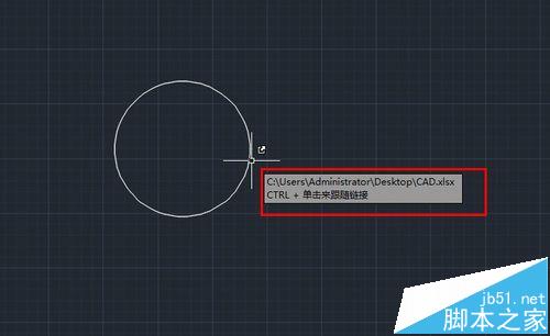3、再在CAD中畫一個圓形,點擊右上角粘貼——粘貼為超鏈接,移動鼠標點擊圓選中。