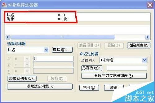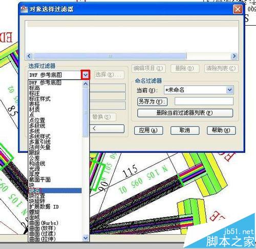 3、點擊選擇過濾器下方的下拉箭頭,選擇下面的“塊名”