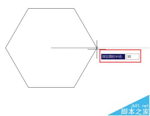 6、然后我們就是輸入我們正多邊形的半徑大小,這里我們根據自己的需要輸入半徑然后按回車鍵就可以了。