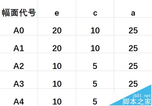 3、然后就是裝訂區域,也就是a,基本上a都是25mm的裝訂寬度,所以這個就是很好記了,之后就是C了,對于我們來說,不同的尺寸的紙張對于的C是不一樣的,我們需要記住,如果我們沒有要求裝訂的話,我們的a就改成e就可以了。