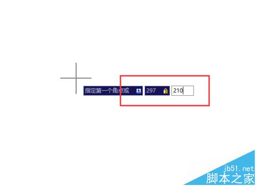 4、然后我們就是用CAD畫出我們的外框大小,這里查詢上面所給的尺寸用矩形命令畫出就可以了,這里我們用矩形命令REC,然后按回車,確定第一個點后輸入我們的長度按逗號再輸入寬度,按空格就可以了,例如我們A4的,就REC 空格 確定第一個點 輸入297按逗號 再輸入210 空格就可以了。
