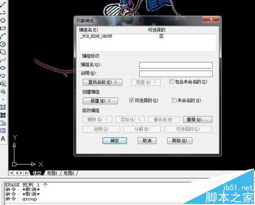 2、你在命令行里輸入group命令,然后回車,會彈出一個對話框,點中編組名文件,點擊分解,點擊確定即可解決問題,然后你返回去重新復制粘貼你是不是發現問題解決了呢!