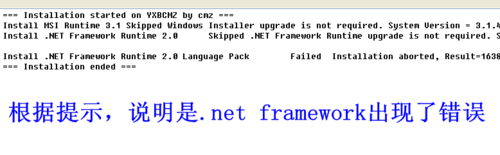 1、首先根據(jù)提示找到并用記事本打開“c:/documents and settings/xxx/local setting/temp”目錄下的autocad 2007 setup.log