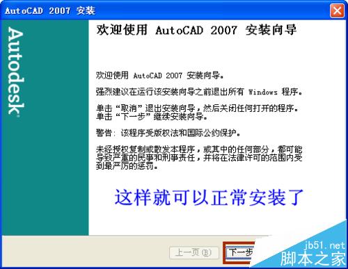 5、這樣就解決了上述的錯(cuò)誤提示。“下一步”,開始安裝。