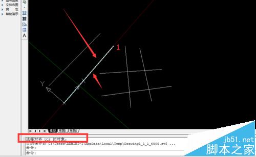 3、之后選擇根據下面的提示,你可選擇ob(當然也可以選擇其他的,這個根據自己的需求)——空格鍵,然后選擇你需要的改變的方向,比如如下圖,選擇和線段1一個方向,那么你選擇這條線即可,之后你看到的就是坐標和1的方向一致了。