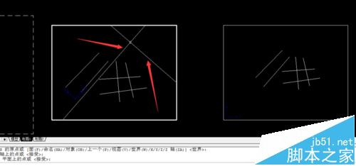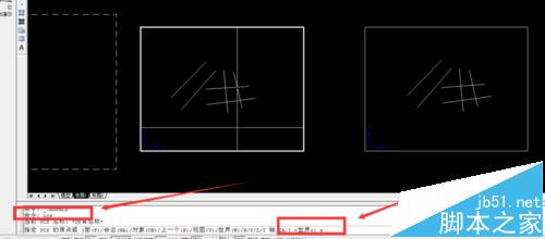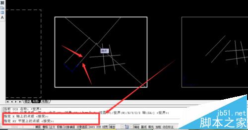 2、我們現在布局一中,用ucs——w——空格鍵——空格鍵——沿著需要變換的方向拉一條線(比如圖中的1這條線段)——空格