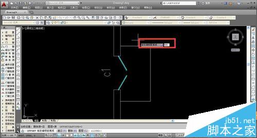 6、確定偏移命令后,第一步,點擊偏移位置,并輸入偏移位移,按下空格鍵進(jìn)行命令的輸入數(shù)據(jù)確定。
