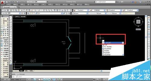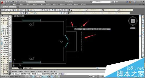 9、進(jìn)行線條的延長和交接,我們可以使用“圓角”命令,輸入命令鍵“F”,按下空格鍵,即可確定圓角命令。