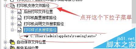 4、點開”打印機支持路徑“,找到下面的子菜單”打印樣式支持路徑“,復制它的路徑
