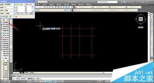 2、在彈出的軸網設置窗口中根據需要進行軸網的設置的輸出,并繪制到CAD繪圖面板上,接著我們進行墻體的繪制,在左側工具欄選擇“墻體——繪制墻體”。