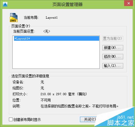 3、在Layout1上右鍵,選擇“頁面設置管理器”可以調圖紙大小(A3、A4什么的);