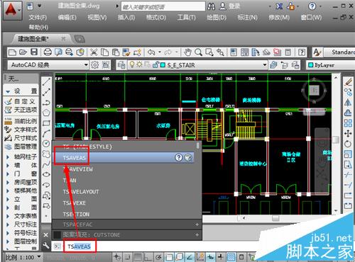 2、在命令欄輸入“ts”,這時候會自動彈出和ts相關的選項,選擇“TSAVEAS”。