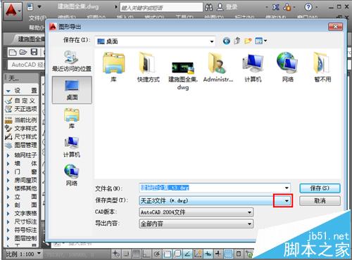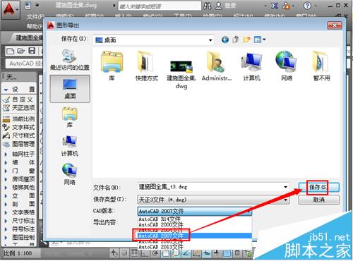 5、點擊“CAD版本”后面的倒三角形,選擇較低的版本,如CAD2007,最低的CAD2004,選擇之后點擊“保存”。