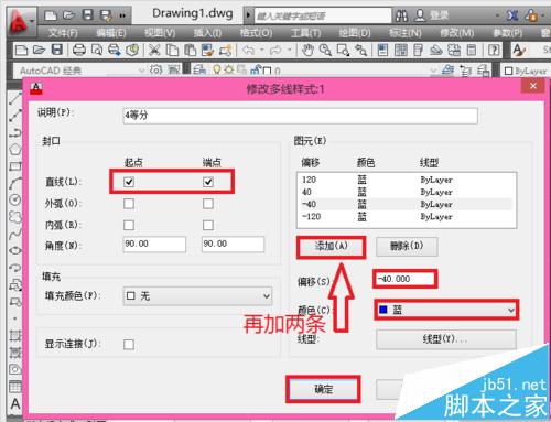 8、點上直線 起點 端點 后的√ ,再添加兩條線,更改偏移與顏色,我這里四等分了,再點 確定!
