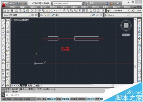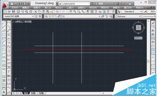 2、快捷鍵L在窗口左側畫一根豎線,再用快捷鍵O水平偏移窗寬距離。