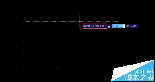 3、點(diǎn)擊【打斷】功能按鈕,現(xiàn)在繪制的矩形上任意選擇一個(gè)點(diǎn),接下來再選擇第二個(gè)打斷點(diǎn),如下圖所示。