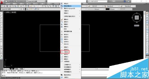 2、繪制完任意矩形之后,在上方菜單欄里找到【修改】選項(xiàng),點(diǎn)擊彈出下拉菜單,在下拉菜單里找到【打斷】功能選項(xiàng),如下圖所示。