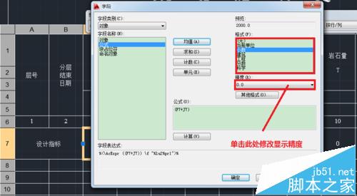 3、單擊GROUPEDIT按鈕后,出現“字段”窗口,如下圖單擊“精度”下拉列表,就可以修改公式計算結果的顯示精度了