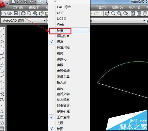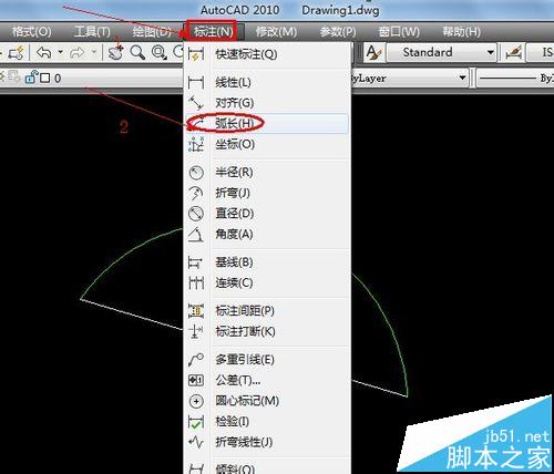 1、這時(shí),你可以點(diǎn)擊工具欄的“標(biāo)注”,在出現(xiàn)的下拉列表中選擇“弧長(zhǎng)”。