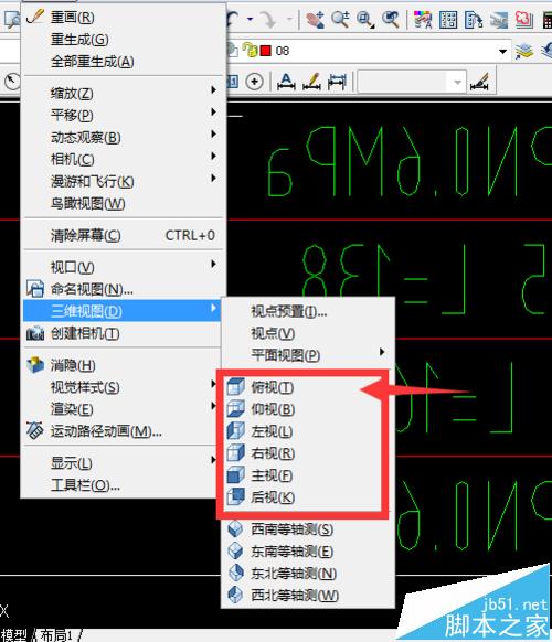 4、我們在三維視圖里看到有“俯視”,選擇即可。也就是說,這張被反過來的圖紙可能是仰視看到的,那么改變一下視角就能將圖紙反過來了。