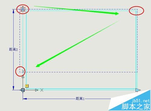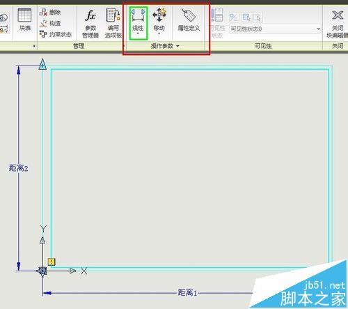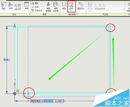 5、垂直方向一樣的操作方法,注意塊編輯時(shí),距離和拉伸動(dòng)作取點(diǎn)的位置關(guān)系——垂直。選擇垂直【距離2】時(shí),選擇的點(diǎn)和對象都是于【距離2】垂直的。