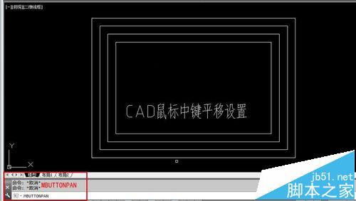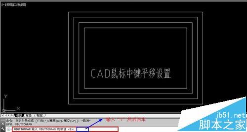 3、這種問題的處理方法是,在CAD的命令欄中輸入“mbuttonpan”并回車;如下圖