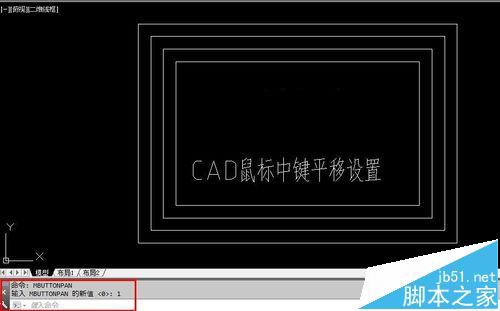 4、命令行提示“MBUTTONPAN輸入MBUTTONPAN的新值(0)”,這時輸入“1”然后單擊回車