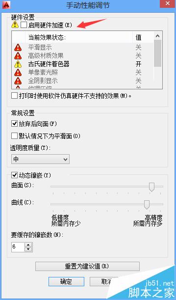 autocad禁用加速時,會彈出以下提示,如下圖: